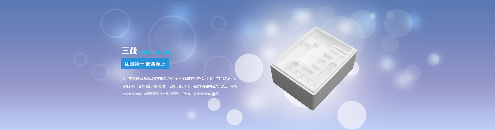 寧波市鄞州三茂泡沫包裝有限公司坐落于坐落于鄞縣大道東段,東吳鎮平塘,交通便利。公司在泡沫包裝領域10多年積累了豐富的協作配套經驗。專業生產EPS泡沫,保利龍系列,泡沫顆粒,各類機械;潔具,工藝品,家用電器;電子儀表;保鮮箱等包裝泡沫。